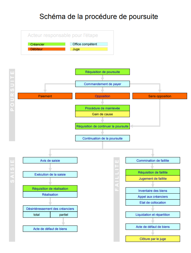 Après la continuation de la poursuite, quand on ne paie rien, l’office des poursuites fait une liste de ce qu’on a et peut décider de prendre certains de nos biens en fonction de leur valeur. Quand cela ne suffit pas à payer la poursuite, il calcule le montant minimum dont on a besoin pour vivre, appelé le minimum vital, pour voir si une saisie sur le revenu (salaire, chômage, revenu d’indépendant) est possible pour payer les poursuites.